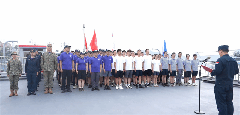 40名师生与来自其他高校师生一同登上享有“功勋训练舰”荣誉称号的海军郑和舰,开展了为期六天的体验式航海实习。