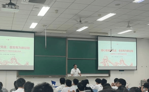 长安校区教学西楼D205教室为2023级本科和硕士新生讲授主题为“凝心聚魂跟党走,奋发有为新征程”的党课。