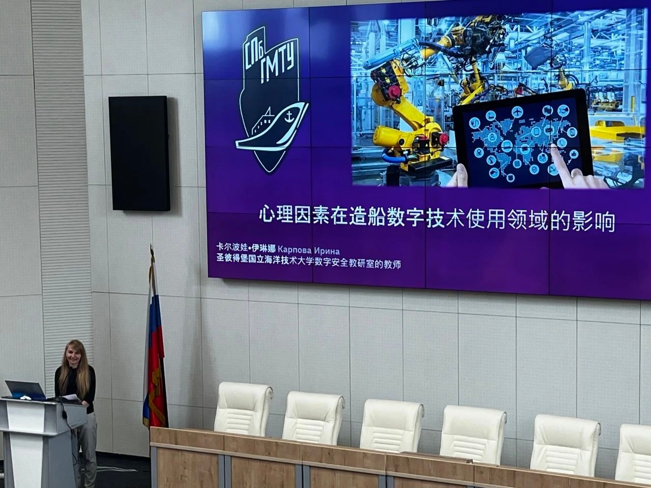 7月11日,参访团队前往了知名船企交流学习。在企业员工的带领下,参访团队了解了该企业发展的历史轨迹,橱窗中可透视的船舶模型与亲身体验VR查船的技术调动着同学们的好奇心。同学们积极提问,与企业友好交流,展现了西工大学生风范与中俄航海领域的友好关系。当日下午,Irina Karpova老师用中文别开生面地为同学们讲述了一节有关心理因素在造船数字技术使用领域的影响,现场气氛活跃,伊琳娜老师诙谐幽默的讲座风格深得同学们喜爱。
