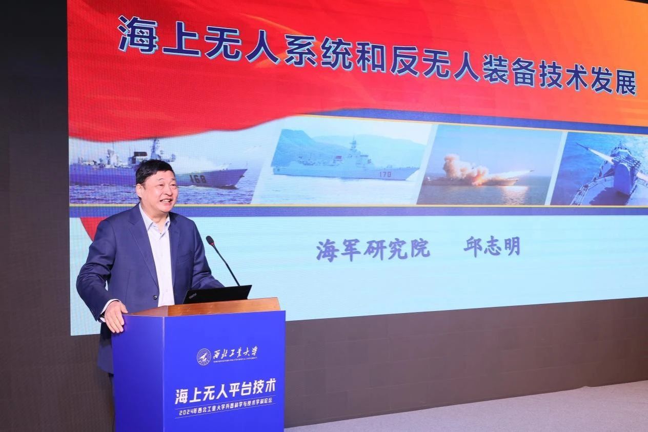 开幕式后,邱志明院士以《海上无人系统和反无人装备技术发展》为题作主旨报告,分析军事智能技术与群智能技术、水下无人航行器、水面无人艇等海上无人系统智能关键技术的发展现状、应用情况及未来发展趋势,希望大家共同为加快海上方向新质战斗力生成贡献更大力量。
