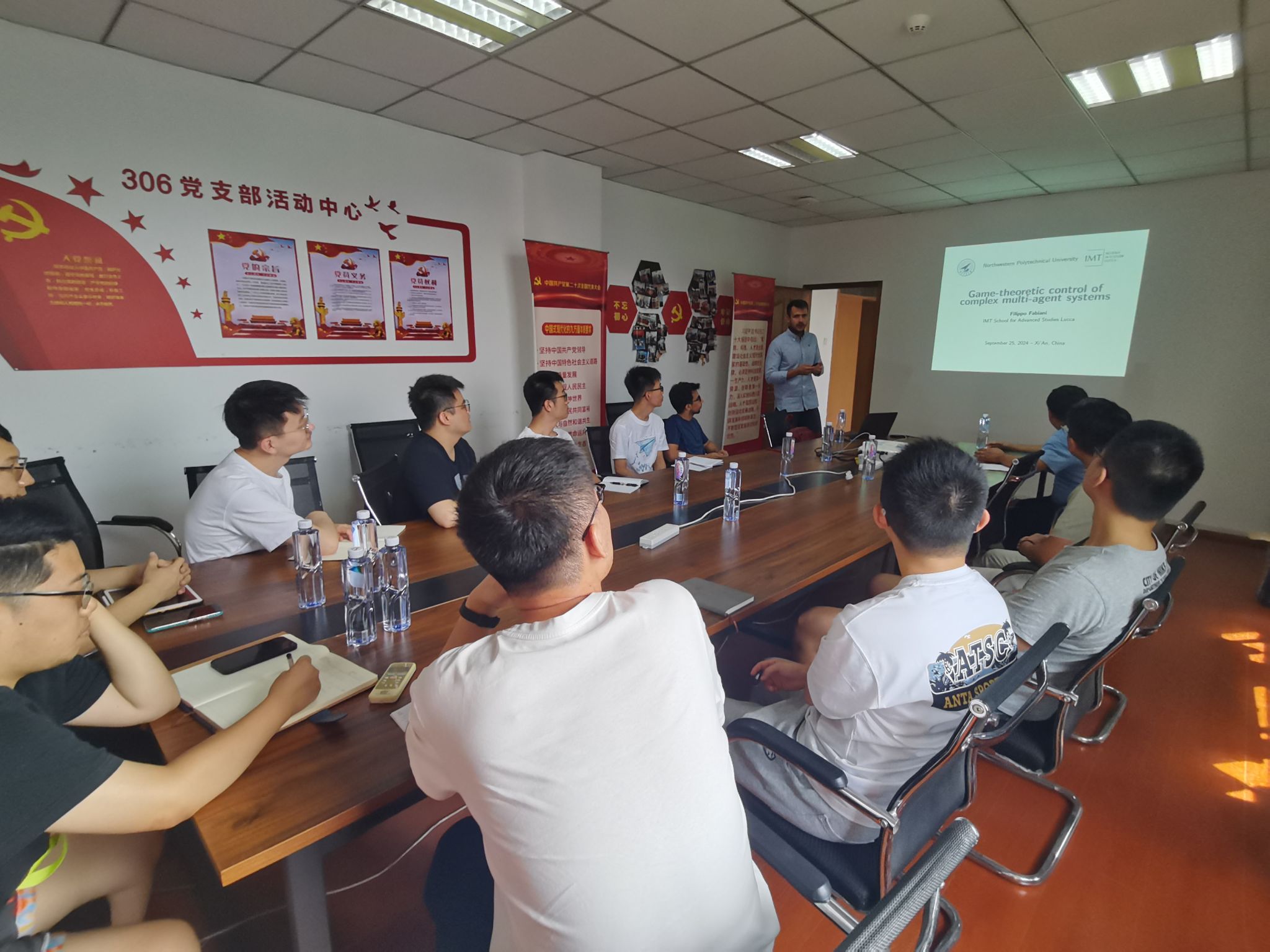 9月25日,意大利卢卡IMT高等研究学校Filippo Fabiani 教授应果冻传媒 李乐副教授的邀请,在学院517会议室,为学院师生作“Game-theoretic control of complex multi-agent systems”为主题的报告。会议由李乐副教授主持,学院20余名师生参会。