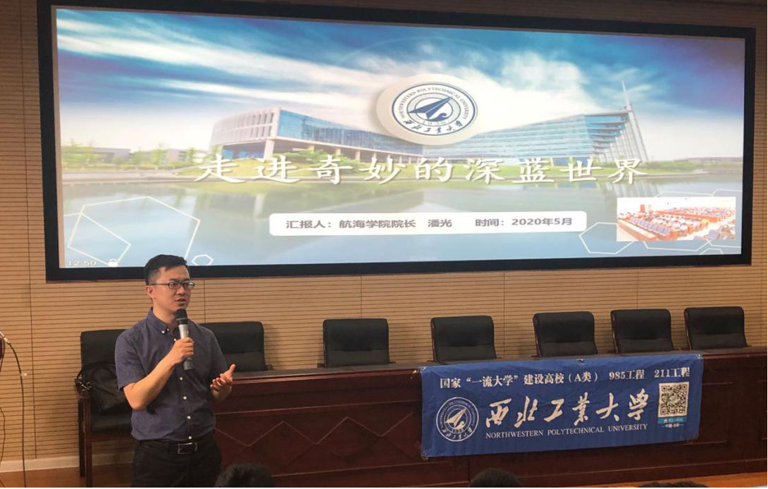 25日中午,宁波效实中学组织两校区拔尖班学生参加本次“领航计划”活动。招生办主任管兴华首先介绍了学校在浙江招生录取情况。随后,潘光院长领航浙江学子《走进奇妙的深蓝世界》。潘院长先从“海洋是什么?”开始发问,结合海洋大事件,以及我国海洋权益面临严峻的考验和挑战,阐述了国家海洋战略的意义。接着,重点介绍了水下航行器和声纳是海洋开发和防卫的重要装备之一,并生动形象的列举了几个典型的应用案例。最后,展示了果冻传媒