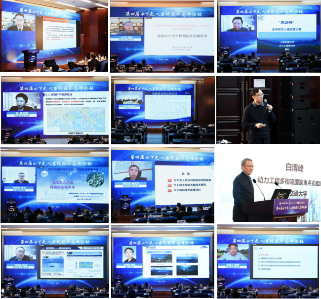 院长潘光教授作题为《仿蝠鲼柔体潜水器控制技术研究进展》的报告;鹏城实验室宽带通信部水下通信技术研究所刘恒利工程师作题为《海洋无人系统一智能船舶新未来》的报告;国防科技大学曹聚亮研究员作题为《面向作战运用的水下导航技术思考》的报告;西安交通大学白博峰教授作题为《水下超临界流体闭环动力技术及应用展望》的报告;哈尔滨工程大学刘淞佐教授作题为《环境自适应多体制水声通信技术》的报告;厦门大学孙海信教授作题为《基于单源点协同导航系统》的报告;大连海事大学徐敏义教授作题为《基于柔性摩擦纳米发电机的水下能量收集》的报告。