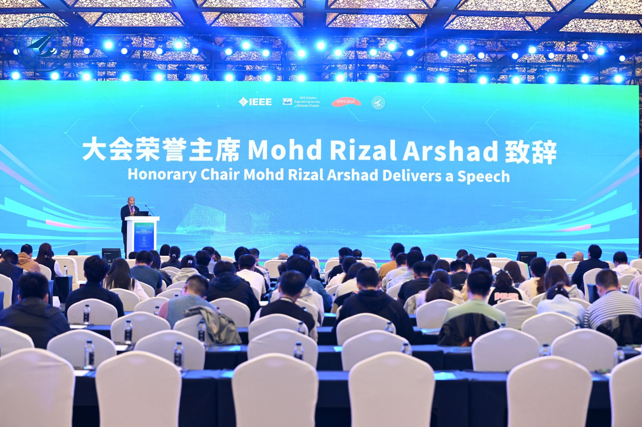 大会名誉主席Mohd Rizal Arshad教授致辞,他表示:国际水下系统与技术会议由IEEE Oceanic Engineering Society发起,每两年举办一次,是船舶与海洋工程领域具有重要国际影响力的学术会议之一,本次能够在果冻传媒