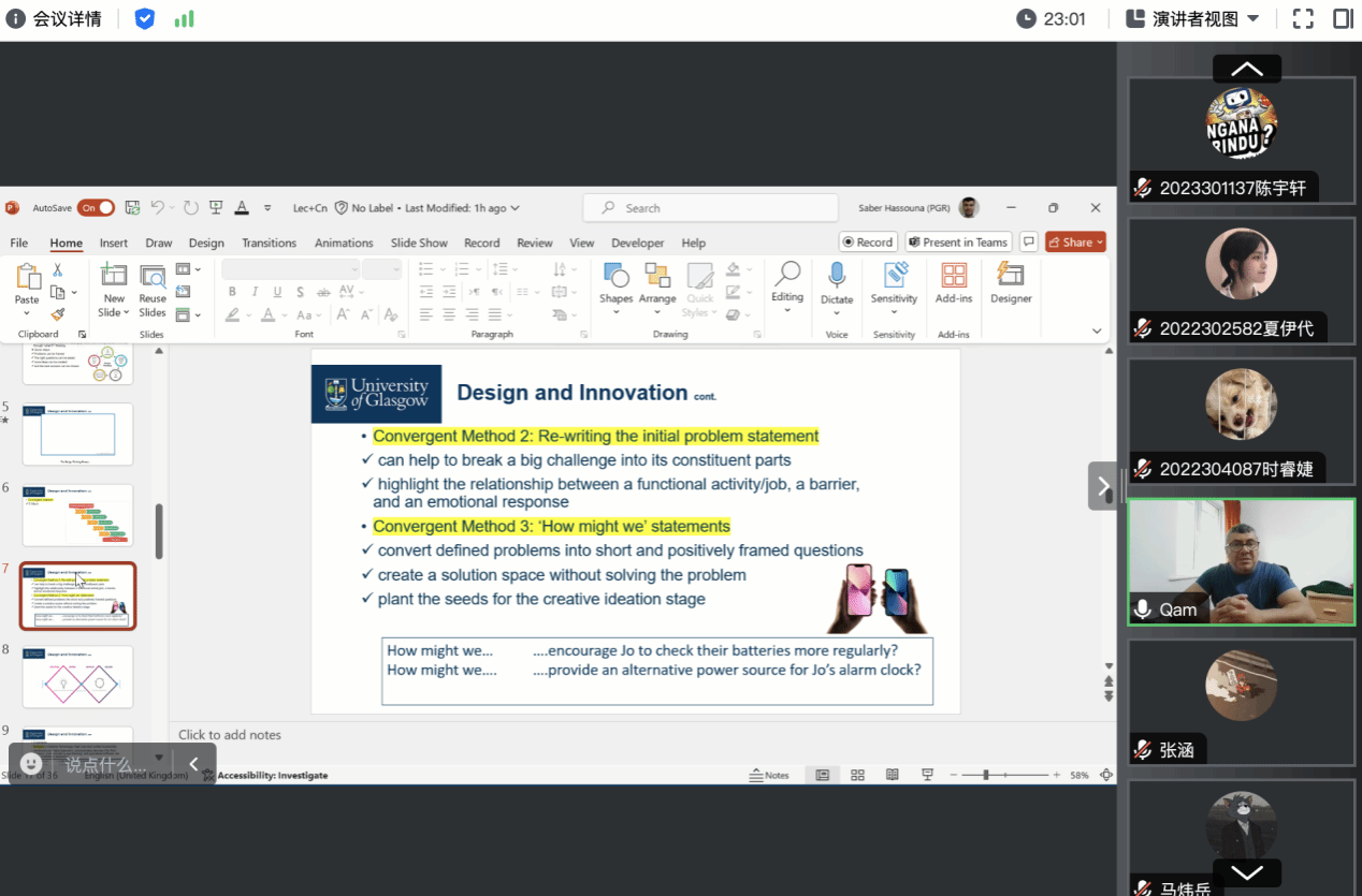 第一节课上,Prof. Qammer H. Abbasi在向学生们自我介绍后,对于格拉斯哥大学及其所在研究组的基本情况进行了简单阐述。最后对于接下来的课程安排进行了简单梳理和预习。