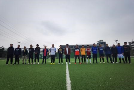 2020年11月21日上午10时,A组的首场比赛于星天苑5号足球场进行比赛。两支队伍分别由海洋工程大类19级本科生7、8班和20级5、6班组成。
