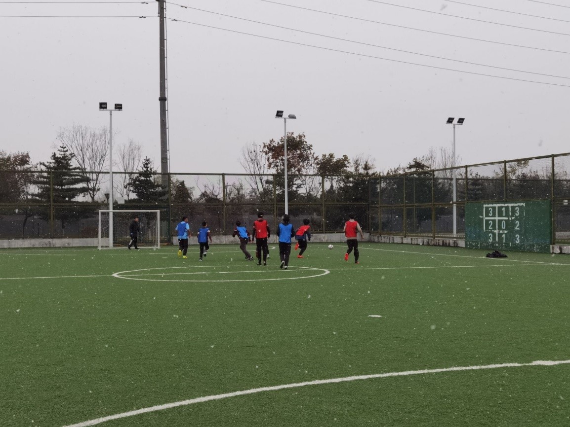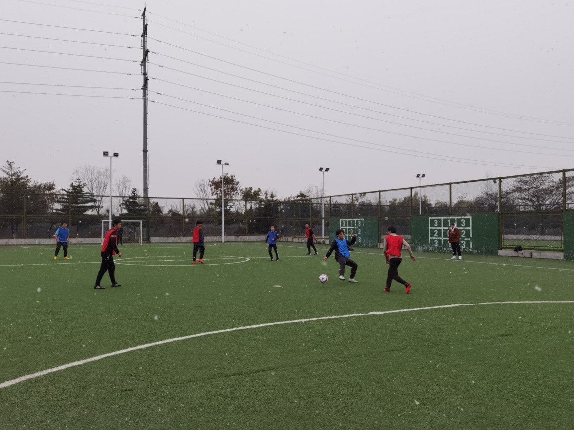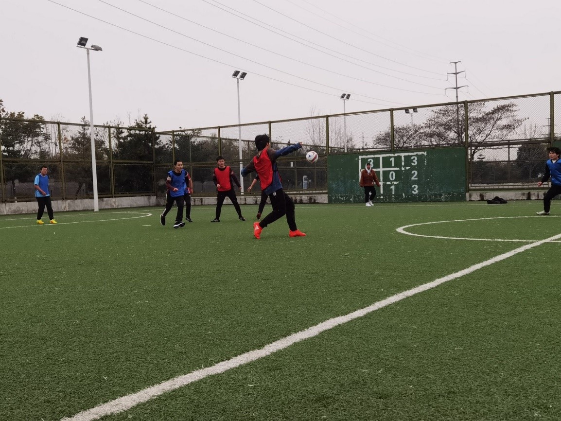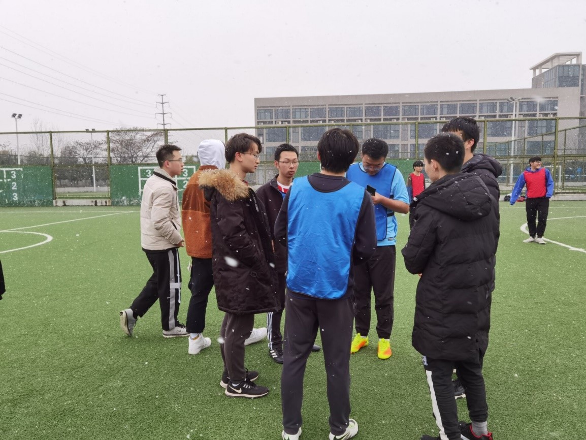 易边再战,19级7/8班联队在开场5分钟率先做出人员调整,由程淇替换上半场发挥欠佳的林茂东。对胜利的渴望激发了两边斗志,即使雪花飘洒,场上却热血沸腾,积极组织进攻,15分钟,19级7/8班高仁杰替换雷一林上场,比赛更加激烈,球员们越战越勇。仅仅三分钟过后,19级7/8班曾谭替换程淇上场,场上双方积极拼抢,赛事高潮不断,但是都未能再取得进球。最终比赛结束,比分定格到1:0。