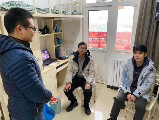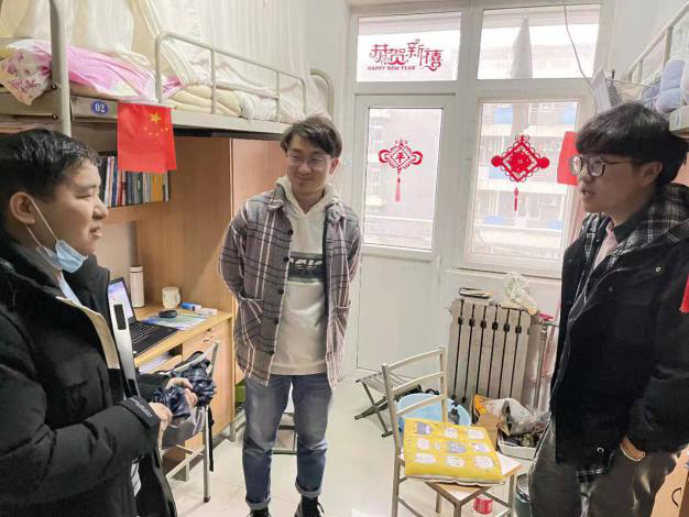 28日,海洋工程大类2019级辅导员李书磊,2020级辅导员崔晓东,硕士辅导员廉杰,博士辅导员张晓燕分别在长安、友谊两校区学生宿舍看望刚刚返校的同学,了解同学们的思想动态以及学习、生活中面临的问题与困难,并鼓励同学们在新的学期继续拼搏进取。
