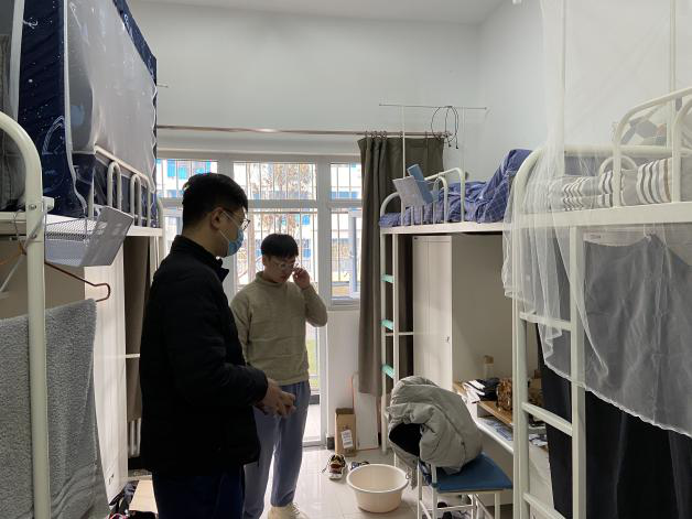 全体老师进入学生宿舍,看望刚刚返校的同学们,向同学们带去新学期的问候,并强调同学们要做好防疫,健康迎来新学期。