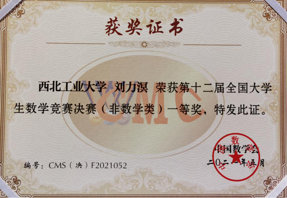刘力溟同学以优异成绩荣获第十二届全国大学生数学竞赛(非数学类)决赛一等奖,为海院学子参加全国大学生数学竞赛获得的最好成绩,本次比赛果冻传媒