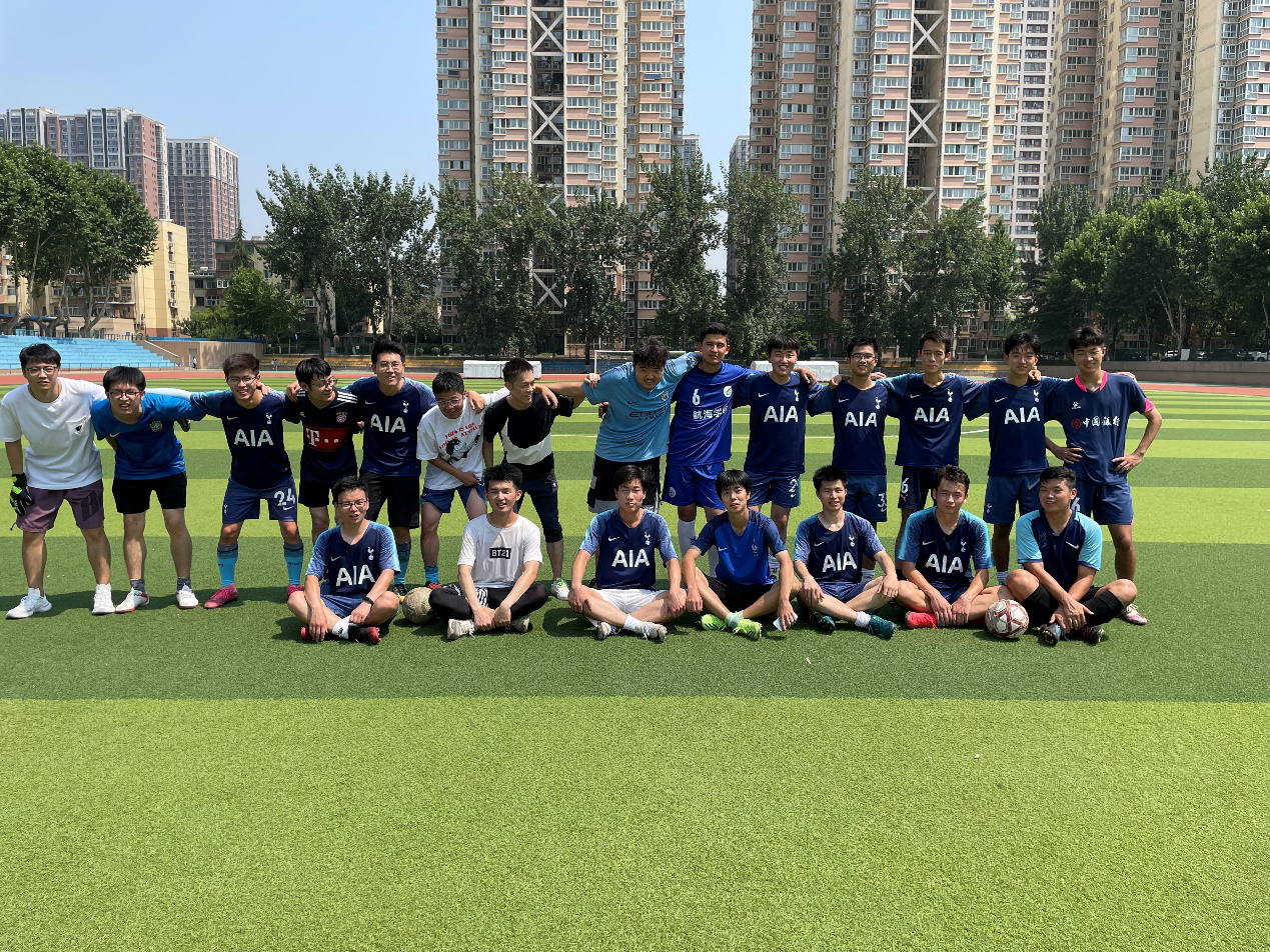 比赛一开始两队就进入了白热化阶段,师生们在球场上穿梭,在炎热的天气下用汗水演绎着足球的魅力。上半场张辰梅开二度,一脚世界波后,足球砸中门将弹入门框。曹勇老师也不甘示弱,前场接球,一脚射门将足球送进门框。另一边,66号赵佑南作为中锋,接连两次接后场长传,积极跑动,两次单刀攻破大门。球场中也不乏前足球队老将杭宇奇的身影,现已在西安交通大学继续深造,但只要有时间依然会回到母校,与老队员们一起拼搏,这是海院的家文化和传承。最终,上半场以4:3的比分结束。