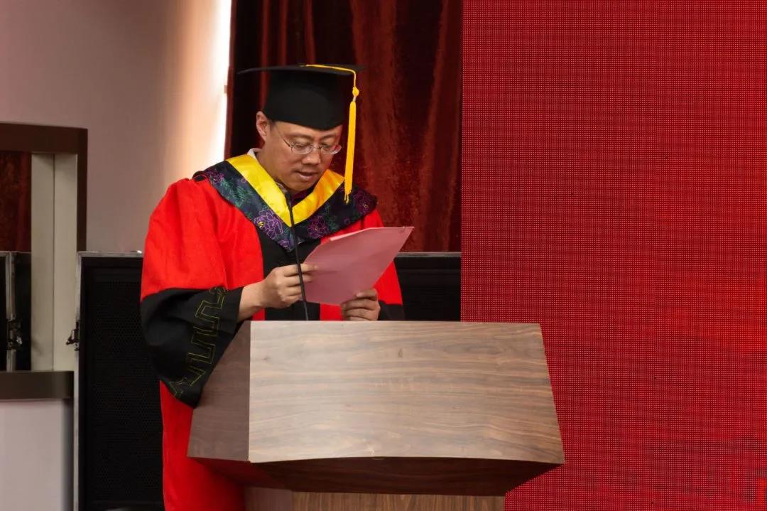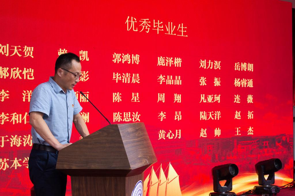 典礼第五项,孙华强宣读优秀毕业生名单,勉励毕业生们向优秀榜样学习,并希望毕业生们无论走到哪里,都要心系学院发展,学院永远是大家的家。