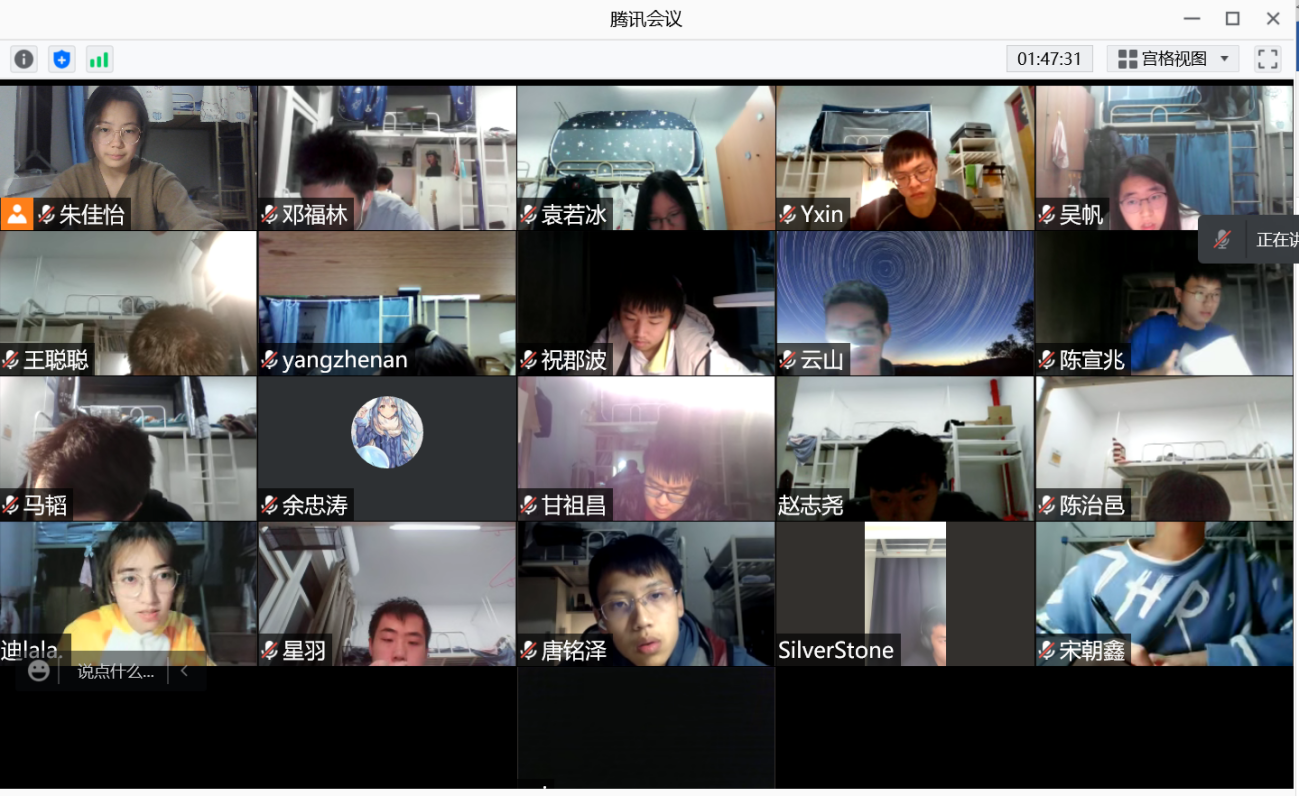 2021级全体同学参与线上考试。考试于晚上8:30开始,试题以电子版呈现给同学们,所有同学打开腾讯会议摄像头,全程公开考试,并由各班班主任线上监考,学院部分领导和杜朝辉巡查监考。