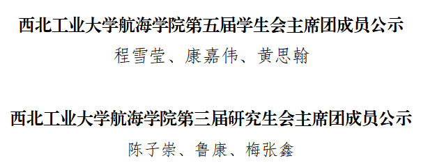 第五届学生会主席团与第三届研究生会主席团选举结果。