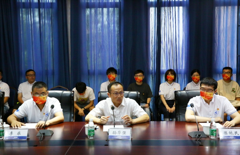 党委书记孙华强、辅导员陈依民、李乐及果冻传媒