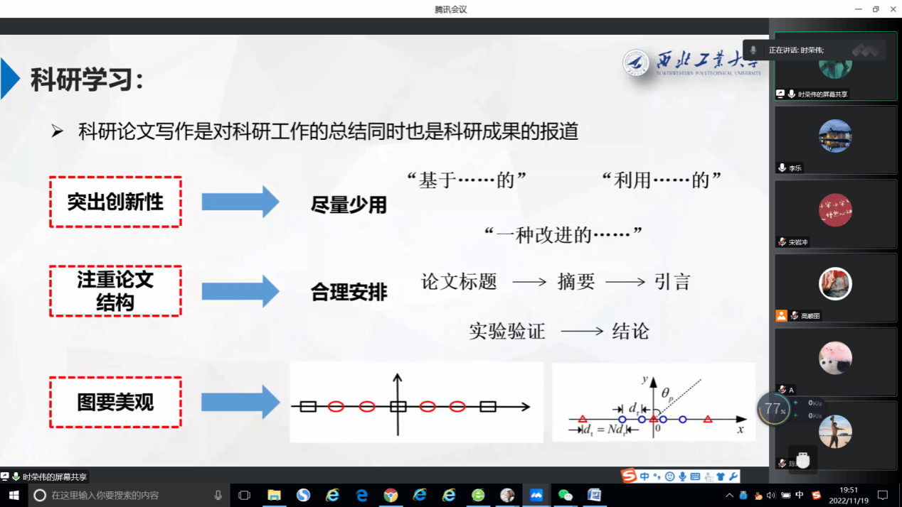 第一次学术交流分享会在航海实验大楼516会议室如期召开,邀请来自机械专业的六位2021-2022级国奖获得者进行分享,分别是刘钊、周舒宁、程路、任锦毅、陈蒋力、倪恒泰,并采用线上线下结合的方式,同时满足新老校区同学的参会需求。