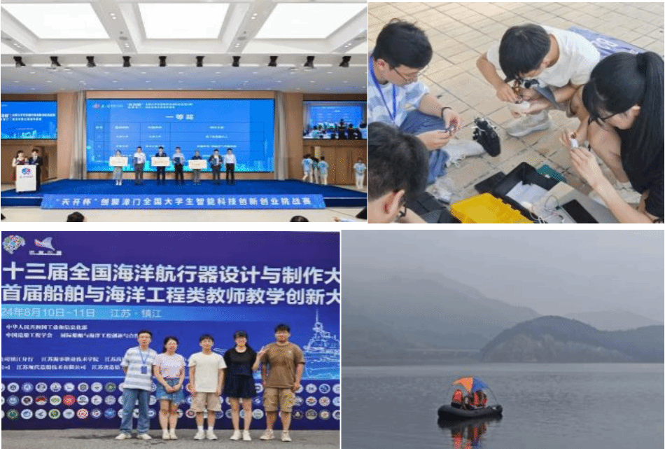舰船模型队现有52名成员(男生38人,女生14人),其中党员32人。团队致力于提升师生海洋知识素养与科创能力,为培养“总师型”人才贡献力量。近年来,团队开展多项志愿活动,如纸船承重大赛、海洋知识竞赛等,积极参与组织实习和协助老师邀请专家宣讲,致力于将海洋科学知识普及至中小学生当中。依托水下航行器基地,定期进行能力培训,组织“海洋文化节”和“青春创享会”,鼓励参与“双创”活动。团队在全国海洋航行器大赛中获特等奖2项、一等奖7项,并在中国国际大学生创新创业大赛中荣获金奖2项。