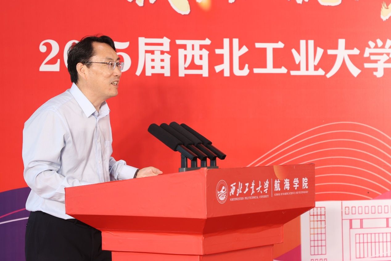 潘光院长寄语全体毕业生,为即将毕业的他们致以最诚挚的祝福和最热烈的祝贺。他对同学们提出了三点希望,一要“信念如舵,劈波斩浪志弥坚;二要“使命作楫,弄潮沧海勇者先”;三要“逐梦踏浪,智启未来向碧霄”。他期望同学们以“乘风破浪会有时,直挂云帆济沧海”的豪情壮志投身于海洋强国的建设事业中,在各自的学习和工作中兢兢业业,恪尽职守,以国家需求为罗盘,让青春在经天纬地的事业中绽放光芒!
