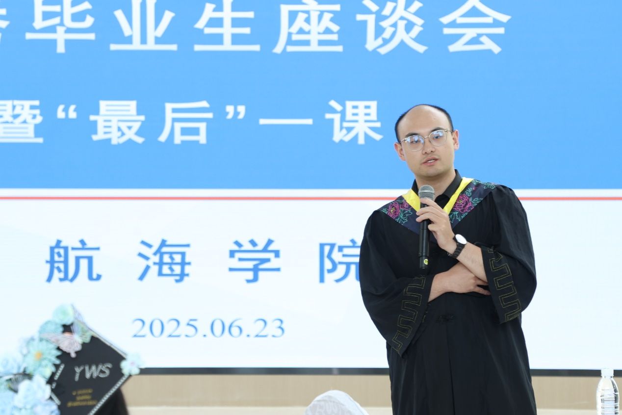 党委书记刘朝亚为毕业生讲授离校前“最后”一节党课。他勉励同学们在奔赴新征程时要锐意进取,将个人理想与时代需求紧密相融,与时代发展同频共振,在祖国的辽阔海域上挥洒汗水,书写不负青春、不负祖国、不负人民的奋斗华章。