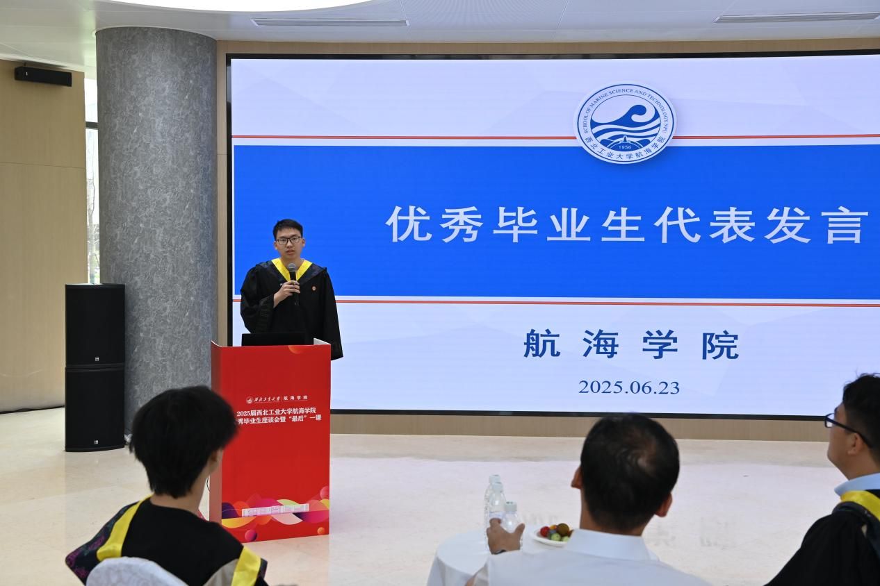 优秀毕业生代表上台发言,现场气氛热烈,同学们踊跃交流本科阶段的学习感悟、生活趣事与成长收获。忆起四年本科时光,与同学们朝夕相处的每一幕都历历在目,那些一同拼搏合作的日子,满是温暖与力量。这段学习生活一定会是同学们人生生涯中熠熠生辉、浓墨重彩的一笔。