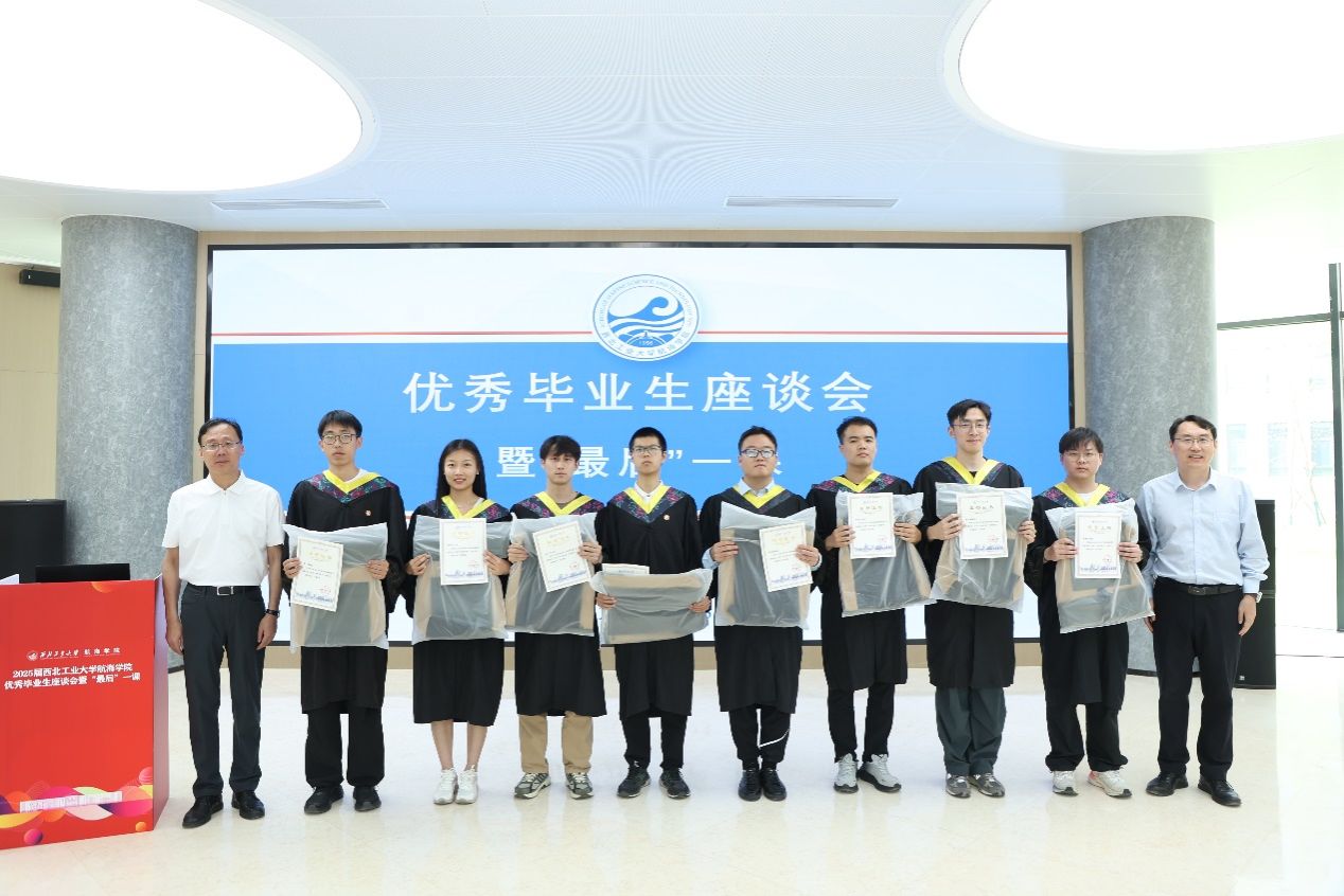 座谈会结束,学院领导为优秀毕业生颁发礼品并合影留念。