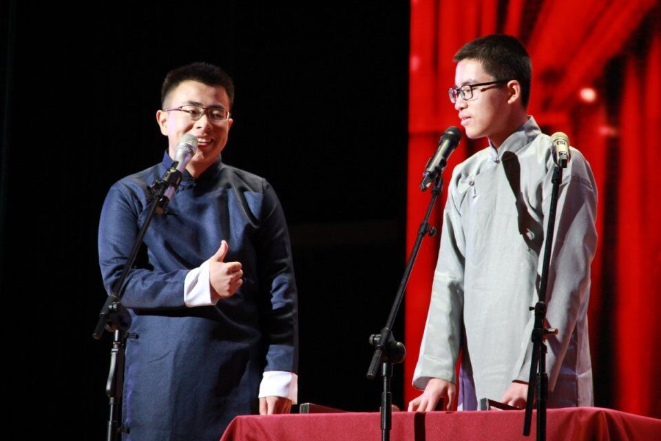 新生张超越和王瑞宝带来的相声《初入校园》,说学逗唱道出了校园生活中的种种乐趣,引得同学们捧腹大笑。