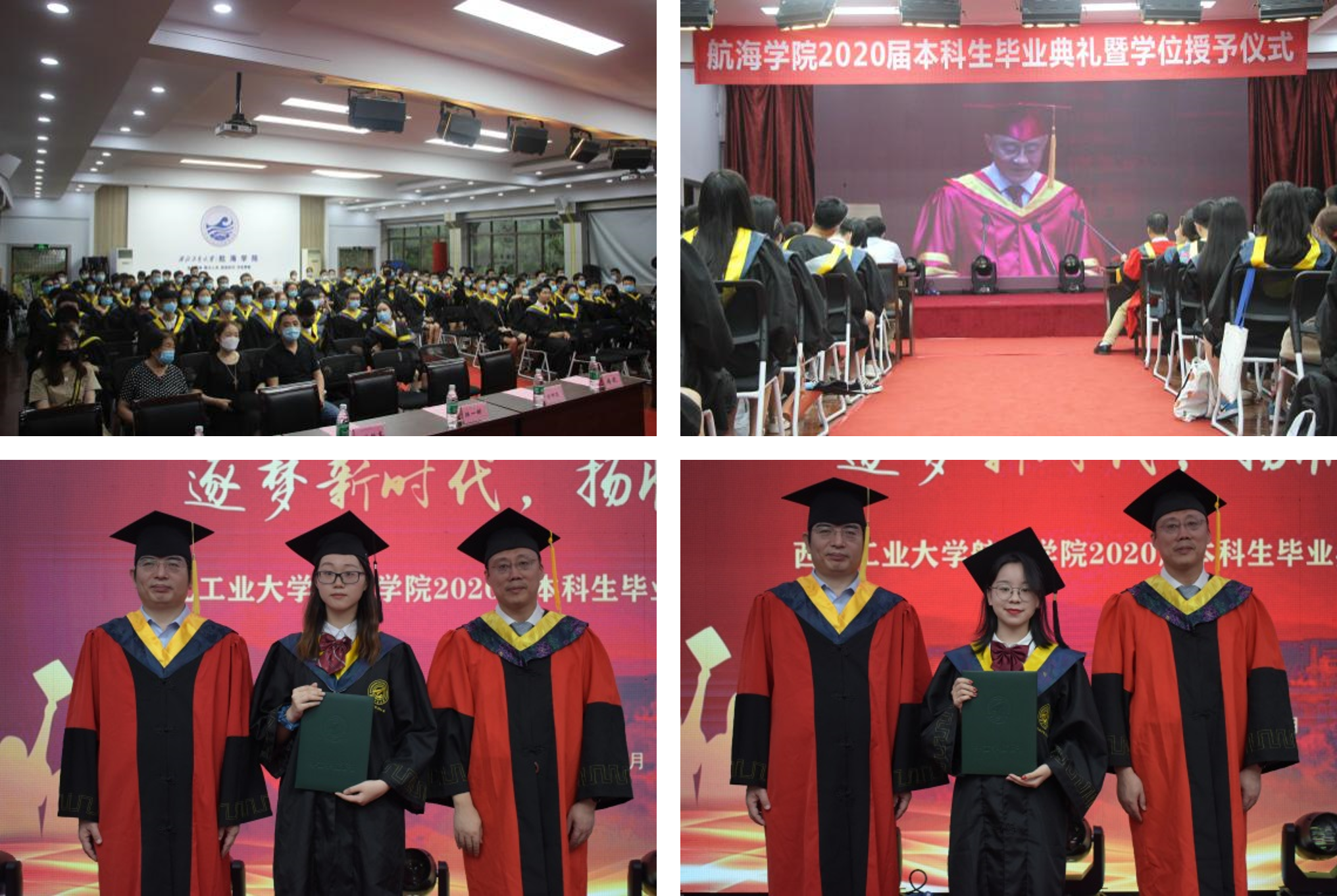 高度重视毕业典礼分会场组织,紧绷疫情防控这根弦,所有人员入场时进行手消,典礼全程师生佩戴口罩。典礼开始时,全体师生收看长安校区毕业典礼主会场直播。接着,分会场议程开始。副书记王银涛宣读了本科额优秀毕业生名单;副院长曾向阳宣读了优秀本科毕业设计名单;聂嘉豪等4位学生代表发言,表达了对母校、学院的感激之情,分享了自己的成长感悟,为全体毕业生送上了祝福;教师代表杜金香表达了对全体毕业生的祝福和嘱托;院长潘光致辞将毕业典礼推向高潮,院长叮嘱大家做一个勇于担当、不惧责任的人,做一个永远学习的人,做一个有“精神”的人,做一个充满人文关怀、适应社会的人。典礼最后,院长潘光和副院长曾向阳为全体毕业生进行了学位授予拨穗仪式,与每一位毕业生合影。