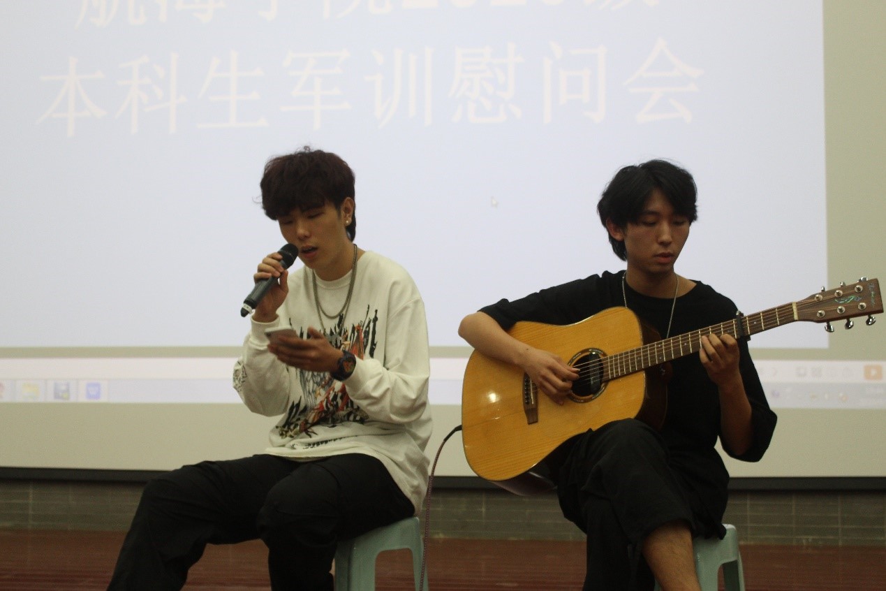 院长助理张龙、学生事务主管崔晓、2020级海洋工程类辅导员崔晓东,以及军训教官代表出席本次活动。全体2020级海洋工程类新生观看此次慰问演出。
