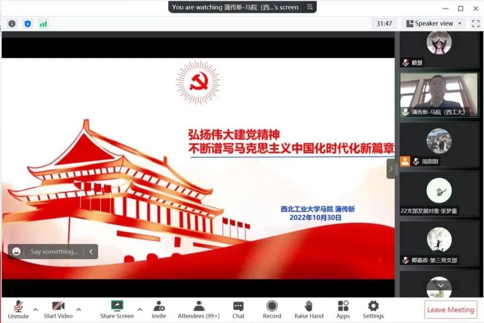 2021级研究生 刘超:此次党课上,我们一起回顾百年党史,回顾风雨飘摇的近代中国,是什么让我们从备受欺侮走向今天的繁荣富强?毫无疑问,没有共产党就没有新中国。身为西工大果冻传媒