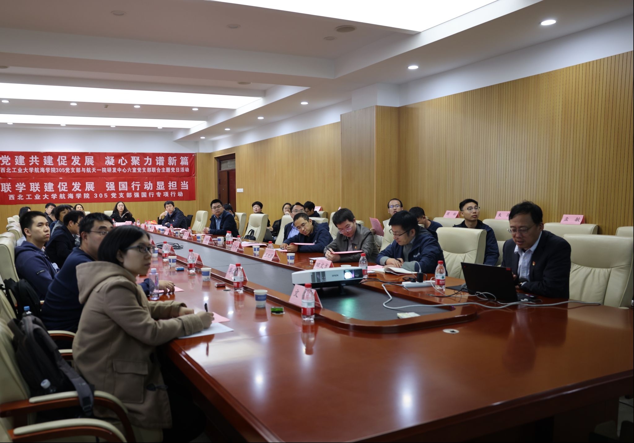 随后,双方就党支部建设和业务共建展开了深入的交流讨论,刘菊青谈到,“航海精神”与“航天精神”均强调“无私奉献”和“团结协作”,这需通过高质量党建增强党员的责任感与使命感,促进两种精神的深入实践。刘朝亚在发言时认为,此次联合党日活动是一个良好开端,航天一院研发中心在交叉领域融合创新、人才培养方面成就显著,特别是如何高效地在肩负繁重科研任务的团队中开展党建工作方面,为我们树立了优秀的学习典范。期待未来双方继续深化合作,加强协同,共育英才。