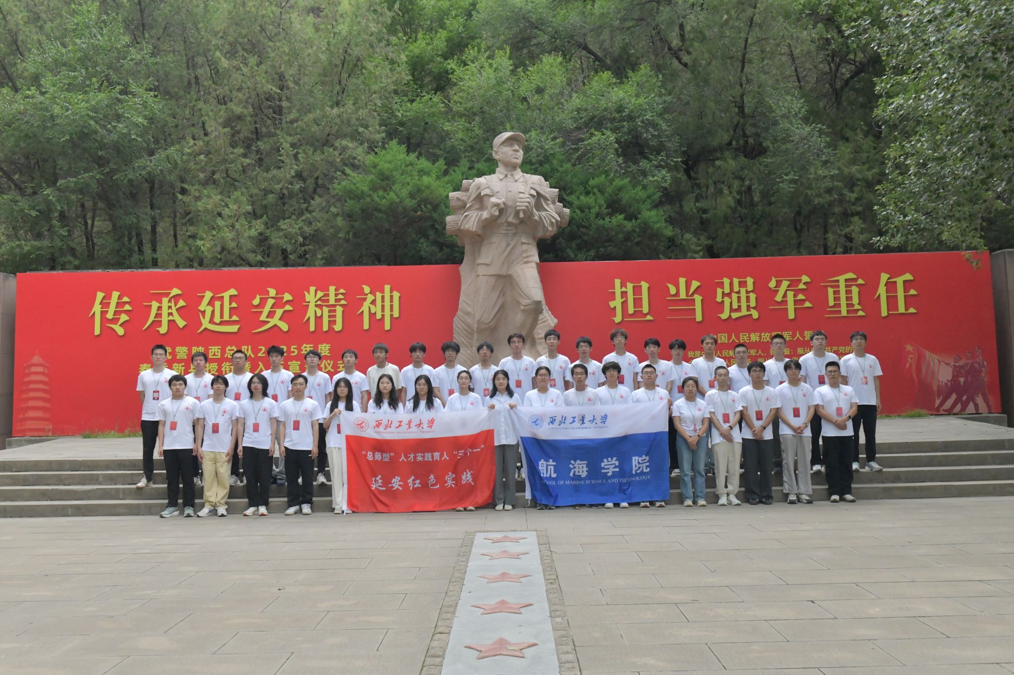 组织师生赴革命圣地延安开展红色实践一期教育。实践队循着革命先辈的足迹,在历史现场感悟延安精神,在沉浸式学习中筑牢信仰之基,以“总师型”人才培养为目标,将红色基因融入科研报国的使命担当。