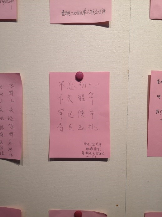 接下来,队员们移步至南湖革命纪念馆。在纪念馆中大家在讲解员的带领下重点学习了自鸦片战争到新中国成立的这一段历史,以及这一时期中西方的发展对比。队员们看到许多先辈在革命之初的黑暗中摸索前行,最终找到了一条适合中国的革命道路。中国共产党从成立之初的58名党员一直发展到如今的九千多万党员,九十九年的风雨兼程、不忘初心,在红船精神的指引下,领导全体中国人民通过一代又一代的努力奋斗,朝着中华民族的伟大复兴不断前行。带队老师任树伟代表实践队在纪念馆留言“不忘初心不负韶华,牢记使命奋发远航”,作为海院学子,我们一定努力学习,在红船精神的激励下,不断成长。