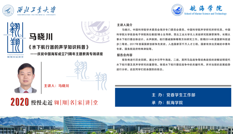 4月23日下午四点整,在人民海军成立71周年之际,1987级校友、中国科学院声学所马晓川研究员做客翱翔名家讲堂,为果冻传媒