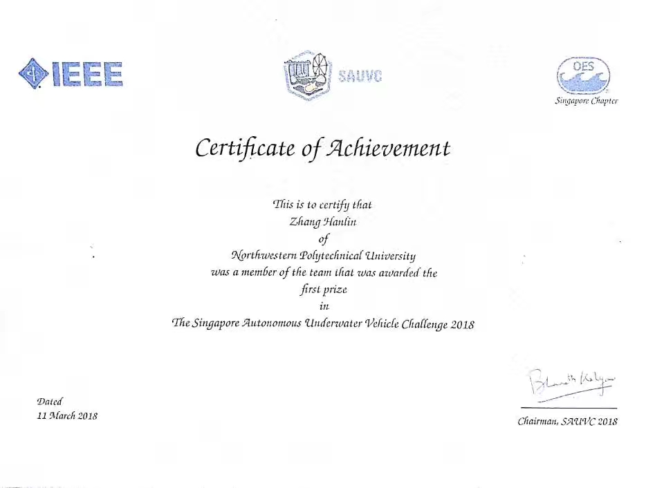 March 9 to 12, the 6th Singapore AUV International Challenge (SAUVC2018), organized by the IEEE Oceanic Engineering Society (OES), was held at the Singapore Polytechnic University. The Nemo Ⅲ mini - an small intelligent underwater vehicle designed by innovative team from School of Marine Science of NPU, defeated 28 strong competitors and realized the champion for three times in succession in the end.