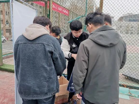 18日上午8点,同志们准时集合,开始紧张的前期准备工作。在负责人的指导下,大家分组配合,对活动所需的马克笔、胶带等办公用品、毕业生信息册、展板等进行分类、整理和转运。
