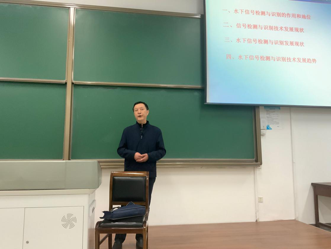 张老师通过丰富的图片的向同学们介绍了水下信号检测与识别技术发展现状。水下信号检测与识别技术具有多方面的发展趋势,仿生探测技术、组网探测技术、复合探测技术都是不可或缺的关键。课程最后,张老师谆谆叮嘱,希望同学们珍惜年华,在有限的四年本科学习时光中找到自己的目标,为梦想奋斗的时光是最有价值的时光。
