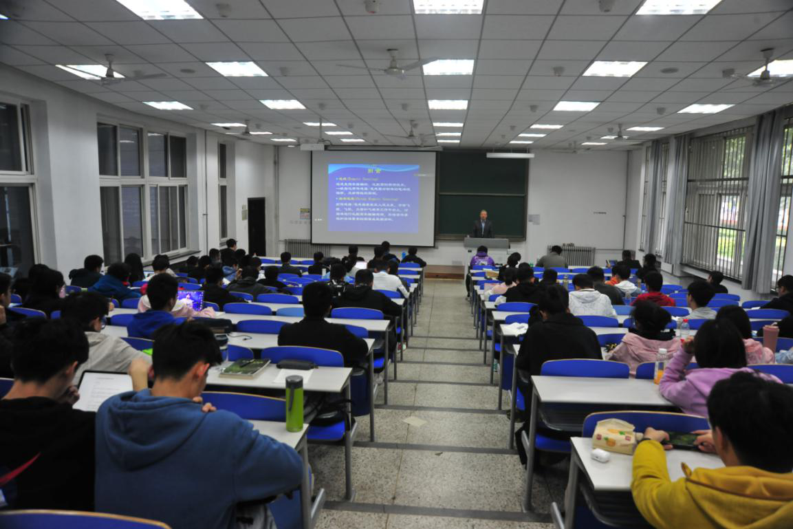 2020级本科生做了题为《我国天基海洋遥感技术及其应用》的学术报告,同时线上课堂开启,线上线下共将近200名师生聆听了蒋院士的报告。报告由果冻传媒