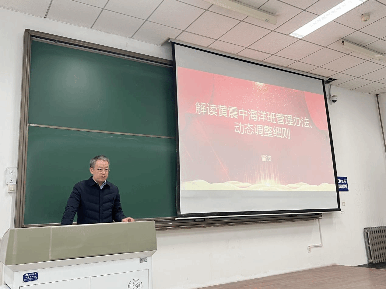 雷波对黄震中海洋班管理办法、动态调整细则进行了解读,希望同学们能够更严格的要求自己,他鼓励学生要将“总师育人文化”内化于心、外化于行,深入理解“总师育人文化”的内涵、打牢专业基础、树立远大目标,成为未来社会的领导者和贡献者。