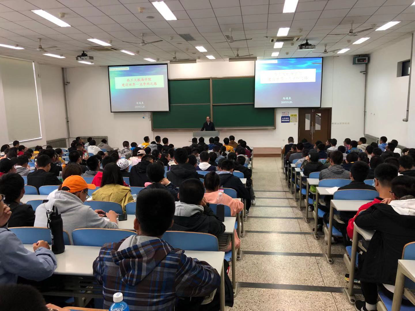 一流学科之路”为题,在长安校区为220余名大一新生讲授“走向深蓝”第一堂课,并向同学们提出了殷切期望。马院士的激情讲授受到了同学们的热烈欢迎,令许多同学印象深刻。一位同学留言道:“我怀着无比激动的心情发这条动态,求学路上最光辉的时刻来了……更加坚定了我认认真真听讲,扎扎实实学习,为海院和国家努力奋斗的信念”。