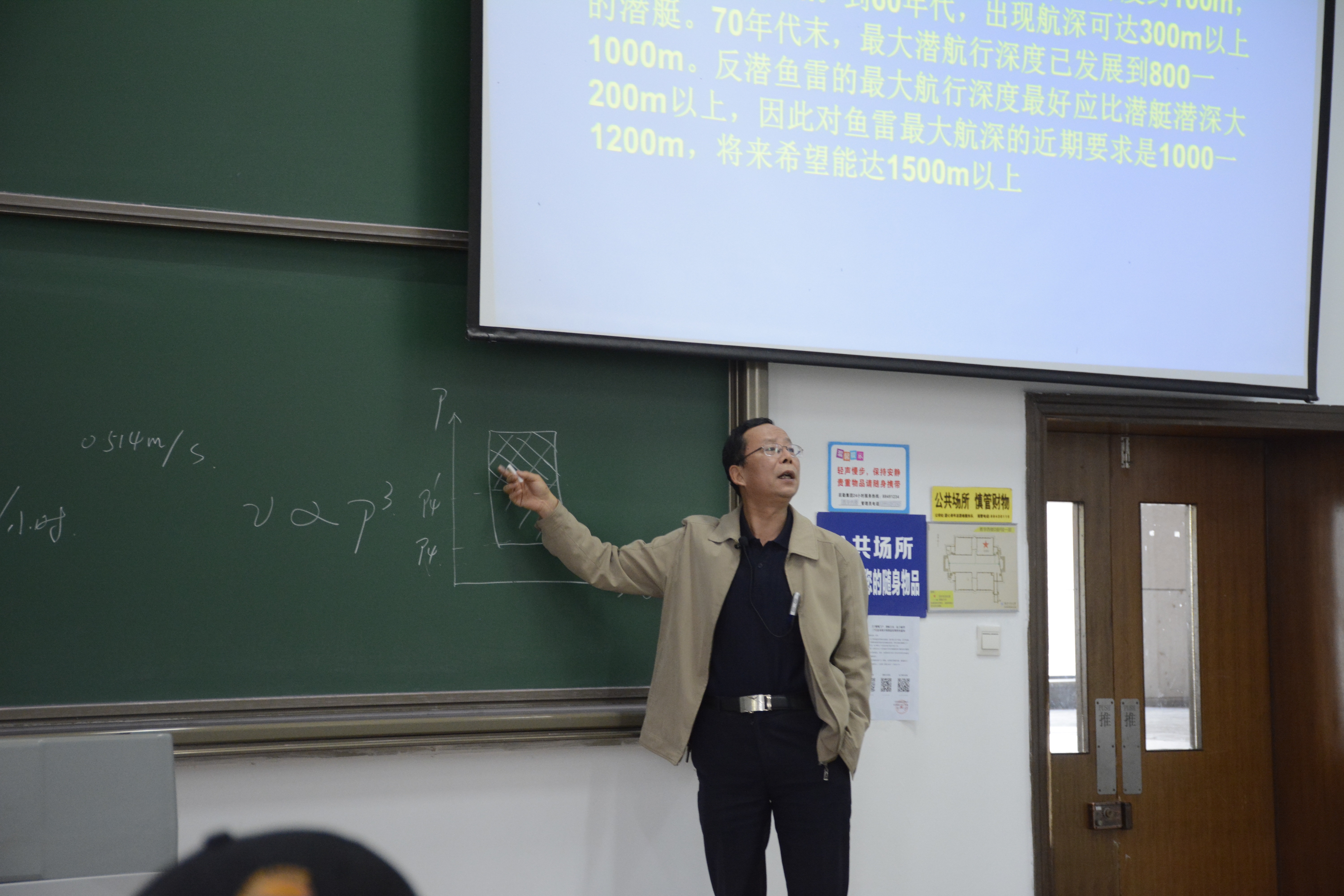 随后,党老师详细介绍了鱼雷动力系统的分类。各种动力系统在历史发展中都进行着不断的革新,从开始仅有的热动力和电动力两种形式到如今的多种新的动力形式不断深入发展,动力系统正随着这个时代研究的不断深入而进行着日新月异的变化。在讲解过程中,党老师结合图片向同学们展示了MK46、TP2000、MK50等多种鱼雷的热动力系统构型。党老师直观、详尽的讲述激起了同学们深入了解动力系统的兴趣,一时间课堂气氛变得十分活跃。