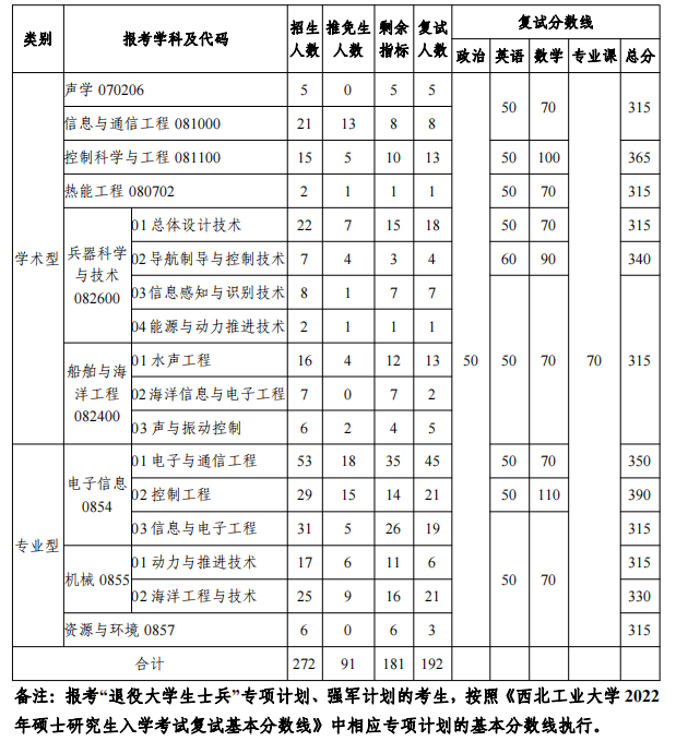 三、各专业复试分数线