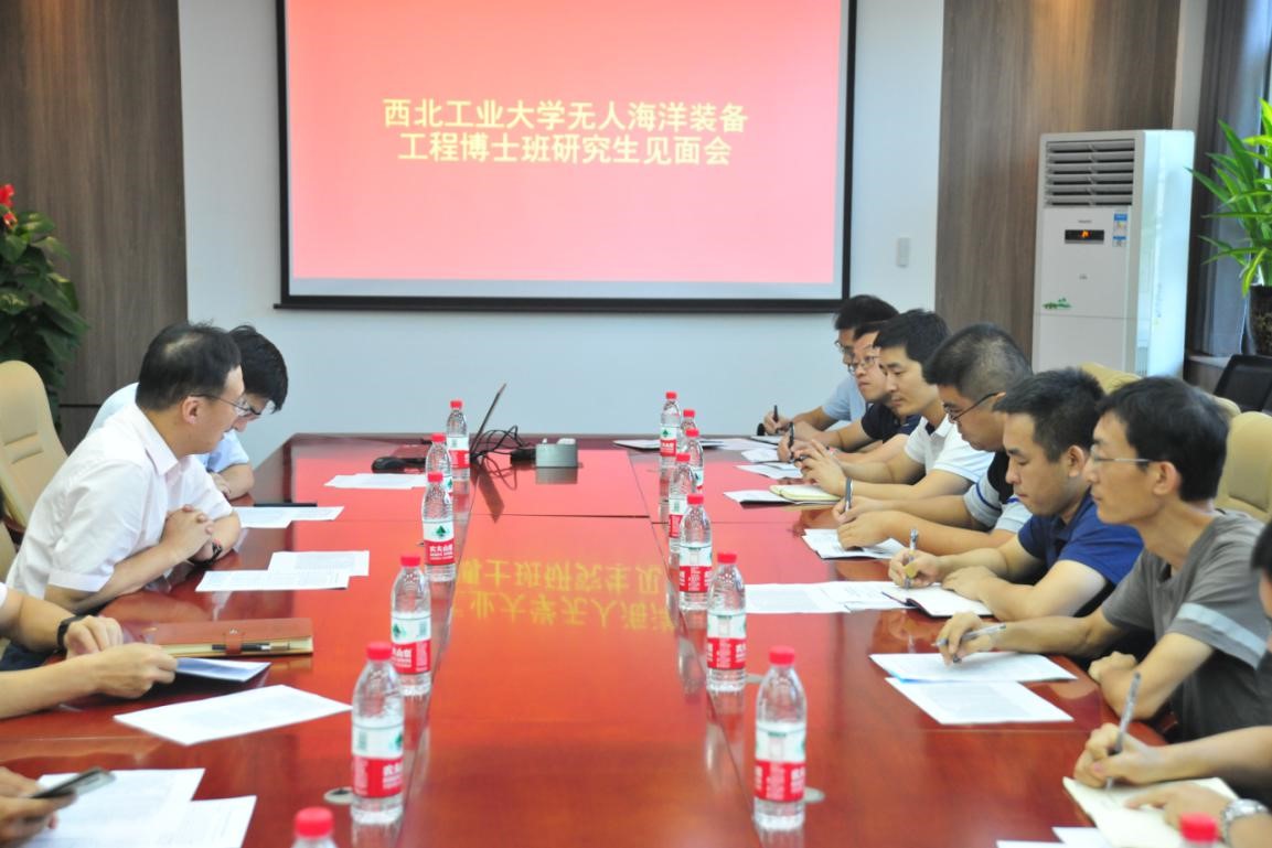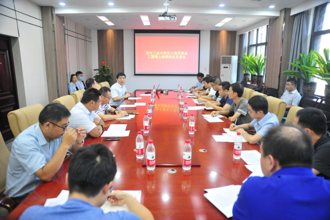 2020年无人海洋装备工程博士班新生见面会,院长潘光、党委书记孙华强、副书记王银涛、副院长曾向阳、副院长杨坤德、副院长崔荣鑫和来自中国船舶重工集团公司、中国兵器工业集团公司、中国航天科工集团公司、重庆前卫科技集团有限公司、中国科学院西安光学精密机械研究所等单位的19名工程博士新生一起参加了会议,会议由崔荣鑫副院长主持。