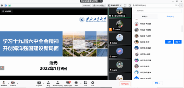 院长潘光在线上带来题为“学习十九届六中全会精神,开创海洋强国建设新局面”的专题党课,学院全体师生党员、积极分子参加,党委书记孙华强主持。线上现场累计观看1200人次,同时在线最高900余人。